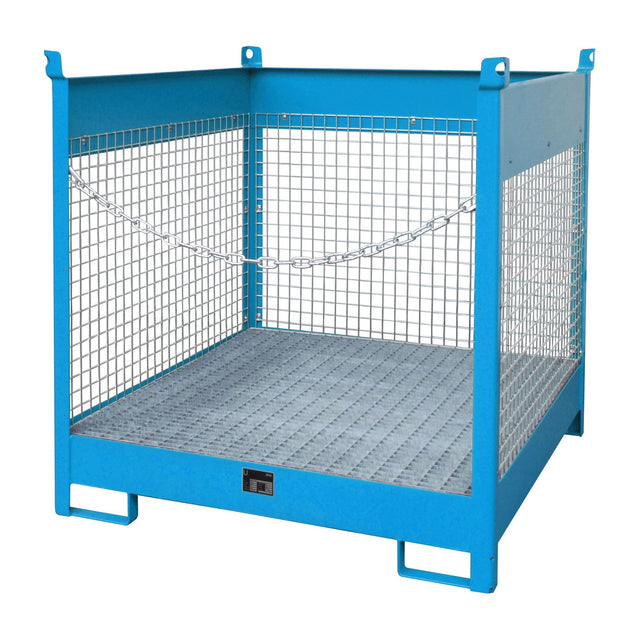 Produktbeschreibung:Lagern, Stapeln und Transportieren von Fässern mit Hubwagen oder Gabelstapler. Für Fässer à 200 Liter, auch mit 60-l-Fässern und Kleingebinden kombinierbarHauptmerkmale: Konstruktion aus 3 mm Stahlblech Verzinkter Gitterrost (Tragfähigkeit 1000 kg/m²) 100 mm Unterfahrhöhe Stapelecken 3-fach stapelbar Kettensicherung Wände aus Drahtgitter Mit Übereinstimmungserklärung (ÜHP) gem.