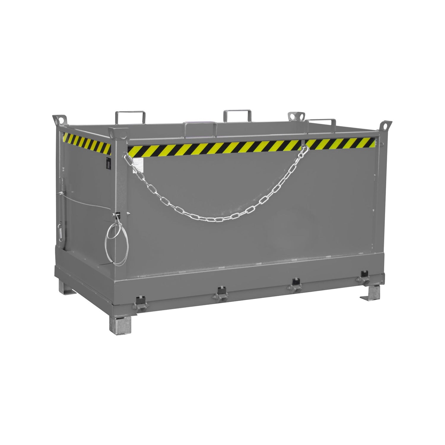 Produktbeschreibung:Ideal zum Sammeln, Lagern und Umfüllen von WertstoffenHauptmerkmale: Robuste Stahlkonstruktion mit glatten Innenwänden Entriegelung der Bodenklappe per Seilzug vom Staplersitz Gummifederung dämpft das ruckartige Herunterschlagen der Bodenklappe beim Entleerungsvorgang Bodenklappe schließt beim Aufsetzen selbsttätig Sicherung gegen Abrutschen und Öffnen der Bodenklappe Aufnahmen für Gabelstapler und Kran 100 mm Unterfahrhöhe – mit Gabelhubwagen transportierbar 4 Kranösen Ø 40 mm 3-fach stapelbar Anwendungsbereiche: Ideal für den Einsatz in Industrie, Handwerk, Lager oder kommunalen Einrichtungen – überall dort, wo Sicherheit, Ordnung und Effizienz im Mittelpunkt stehen.