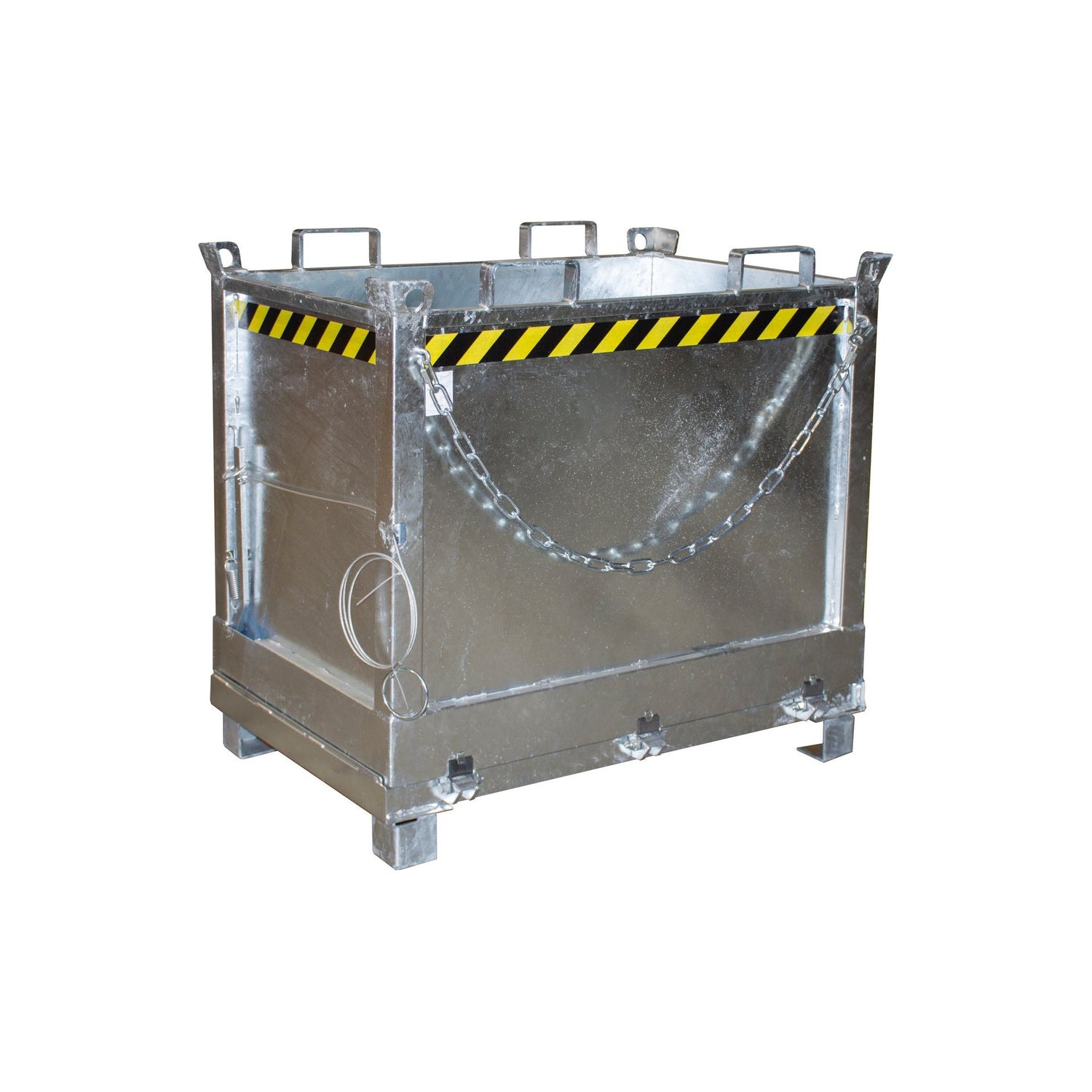 Produktbeschreibung:Ideal zum Sammeln, Lagern und Umfüllen von WertstoffenHauptmerkmale: Robuste Stahlkonstruktion mit glatten Innenwänden Entriegelung der Bodenklappe per Seilzug vom Staplersitz Gummifederung dämpft das ruckartige Herunterschlagen der Bodenklappe beim Entleerungsvorgang Bodenklappe schließt beim Aufsetzen selbsttätig Sicherung gegen Abrutschen und Öffnen der Bodenklappe Aufnahmen für Gabelstapler und Kran 100 mm Unterfahrhöhe – mit Gabelhubwagen transportierbar 4 Kranösen Ø 40 mm 3-fach stapelbar Passend für Routenzug-Rollwagen 1200 x 800 mm Anwendungsbereiche: Ideal für den Einsatz in Industrie, Handwerk, Lager oder kommunalen Einrichtungen – überall dort, wo Sicherheit, Ordnung und Effizienz im Mittelpunkt stehen.