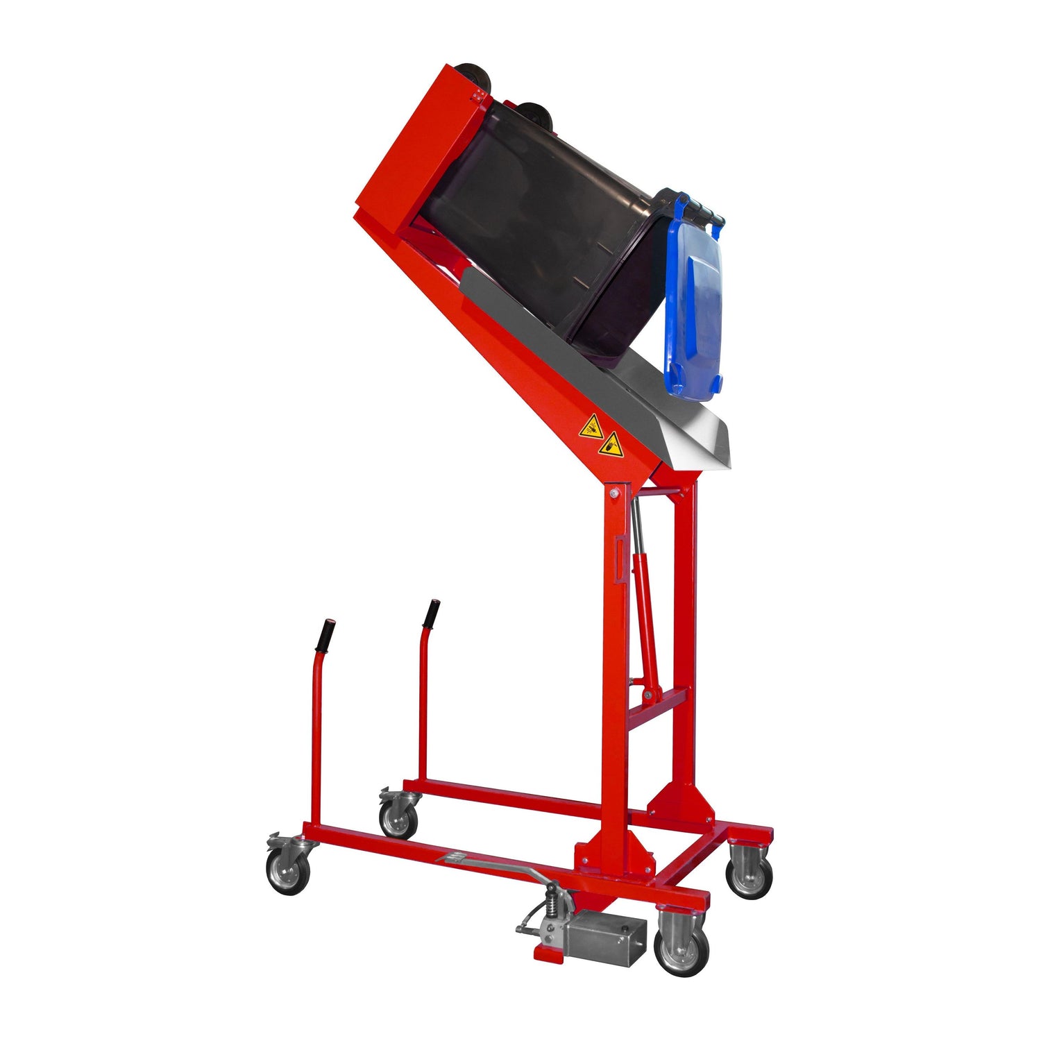 Produktbeschreibung:Zur Entleerung und Reinigung von 120- und 240-l-MülltonnenHauptmerkmale: Antrieb hydraulisch Kippwinkel bis 135 Grad Ausschütthöhe ca. 1.480 mm 2 Lenk- und 2 Bockrollen aus Vollgummi Ø 180 mm, davon 2 Lenkrollen mit Feststeller – Bauhöhe 225 mm Mit Fußpumpe, ca.