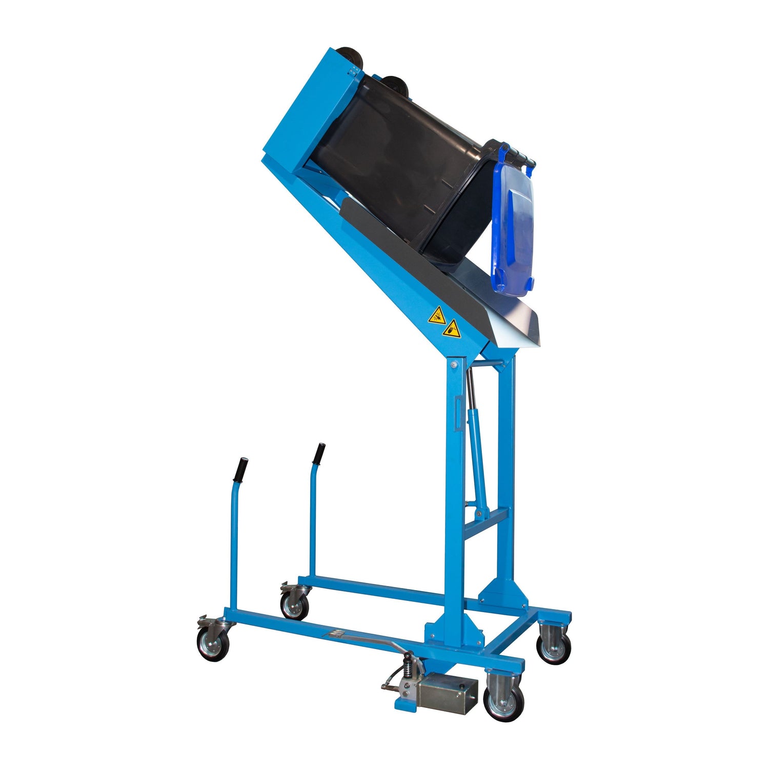 Produktbeschreibung:Zur Entleerung und Reinigung von 120- und 240-l-MülltonnenHauptmerkmale: Antrieb hydraulisch Kippwinkel bis 135 Grad Ausschütthöhe ca. 1.480 mm 2 Lenk- und 2 Bockrollen aus Vollgummi Ø 180 mm, davon 2 Lenkrollen mit Feststeller – Bauhöhe 225 mm Mit Fußpumpe, ca.
