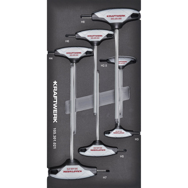 - Modell: Kraftwerk BASIC LINE Winkelschraubendreher mit T-Griff, Innen Sechskant Kugelkopf, EVA-Einlage, 20 x 40 cm, 7-tlg.