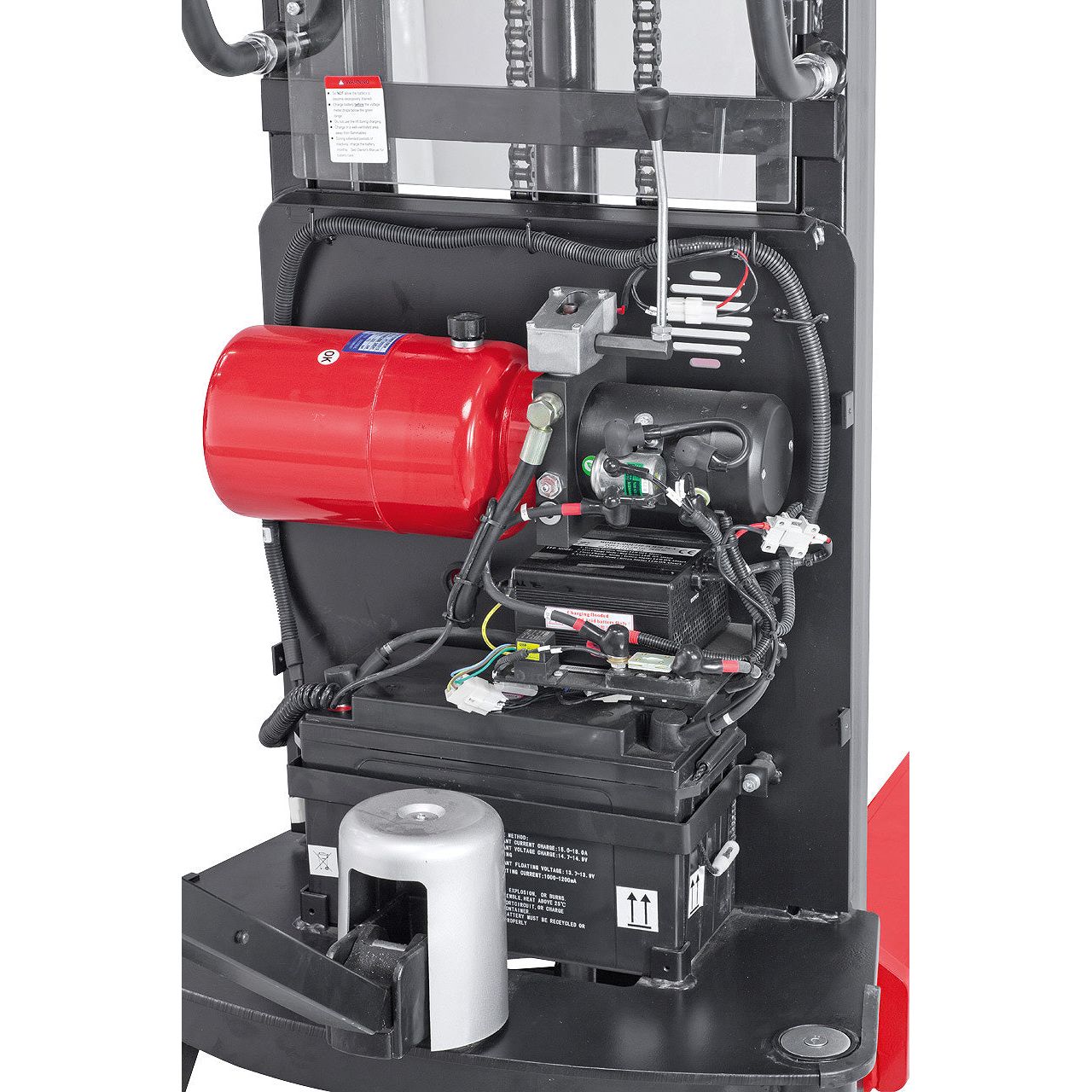 - Sicheres Arbeiten – durch Schutzgitter am Hubmast und mechanische Feststellbremse