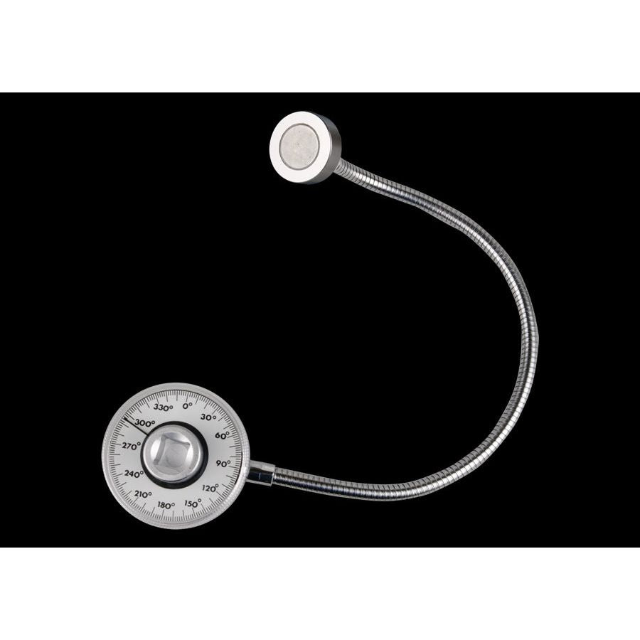 KING TONY Profi-Werkzeuge - 1/2" Drehwinkel-Messgerät mit Magnetarm 34440A 360° Winkel, Markierung in 2°-Schritten, Intervalle in 10°+ 30° Schritten Mit flexiblem Magnetarm für eine einfache Ausführung Transparente Verbundplatte mit integriertem Zeiger, schützt das Zifferblatt vor Schmutz und Fett.