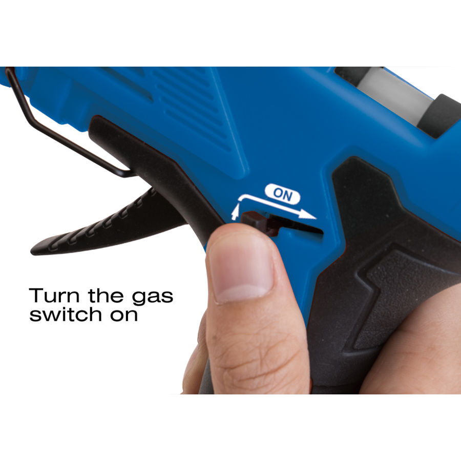 KING TONY Profi-Werkzeuge - Butangas-Klebepistole 6BJ21 Norm: GS (Geprüfte Sicherheit) zertifiziert Kabellos, leicht zu transportieren und praktisch in der Anwendung.
