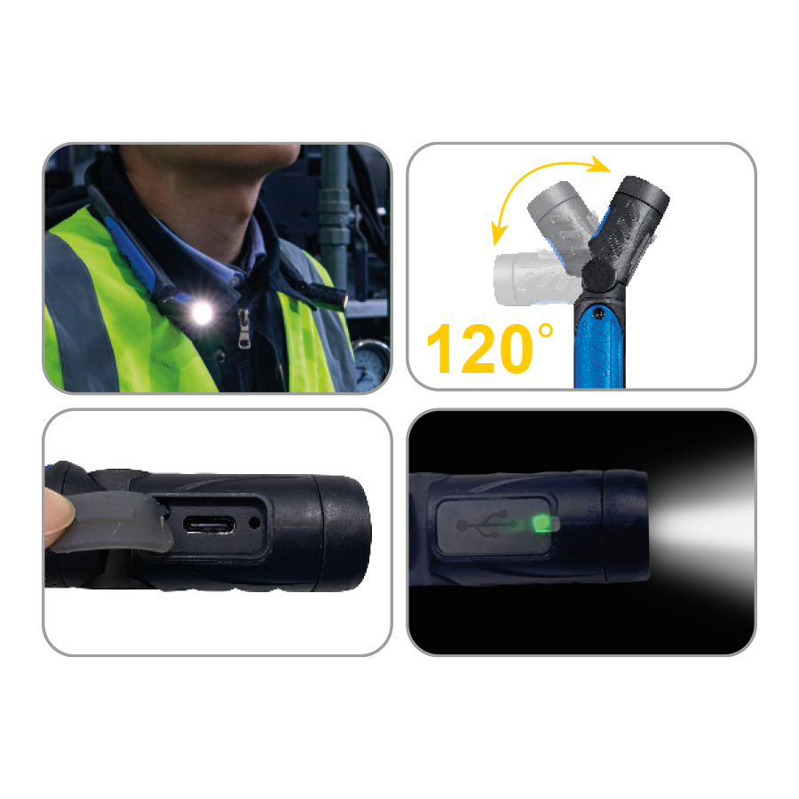 KING TONY Profi-Werkzeuge - LED-Wiederaufladbare Halslampe 9TA54A Leichte, verstellbare und bequeme Nackenleuchte 2 Lichtköpfe, die unabhängig voneinander bis zu 120° für eine breitere Ausleuchtung eingestellt werden können.