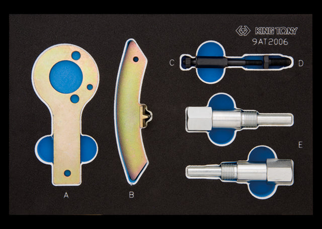 KING TONY Profi-Werkzeuge - Steuerzeiten-Einstellset für Dieselmotoren LANCIA/FIAT/ALFA ROMEO 9AT2006 Kompatibel mit allen Lancia, Alfa Romeo und Fiat Motoren Dieses Kit beinhaltet ein Feststellwerkzeug für das Schwungrad, ein Kurbelwellen-Blockierwerkzeug und ein Nockenwellen-Einstellwerkzeug.
