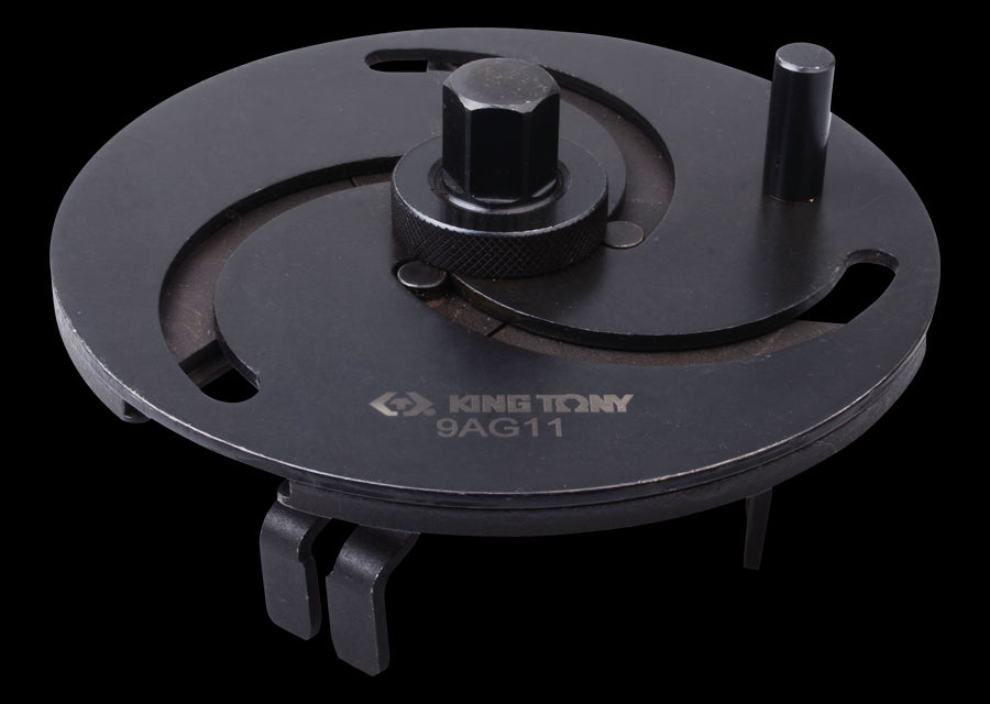 KING TONY Profi-Werkzeuge - Universal Zapfenschlüssel für Kraftstofftank-Meßschacht 9AG11 Für den Ein- und Ausbau der Messschächte des Kraftstofftanks Vermeidet, die Falzringe zu beschädigen Schnelle Verriegelung dank der Seilscheibe Antrieb mit Sechskantmutter von 16mm.