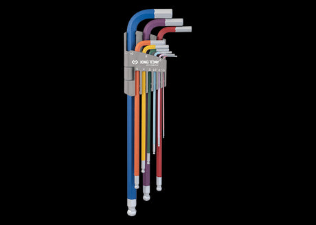 KING TONY Profi-Werkzeuge - 6-Kantschlüssel-Set, runder Kopf, extra lang - 9 tlg. Farbcode 20109MW