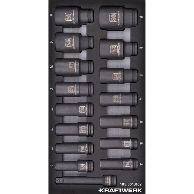 - Modell: Kraftwerk BASIC LINE 1/2'' Schlag-Maschinenschrauben Steckschlüsseleinsatz, lang, EVA-Einlage, 20 x 40 cm, 16-tlg.