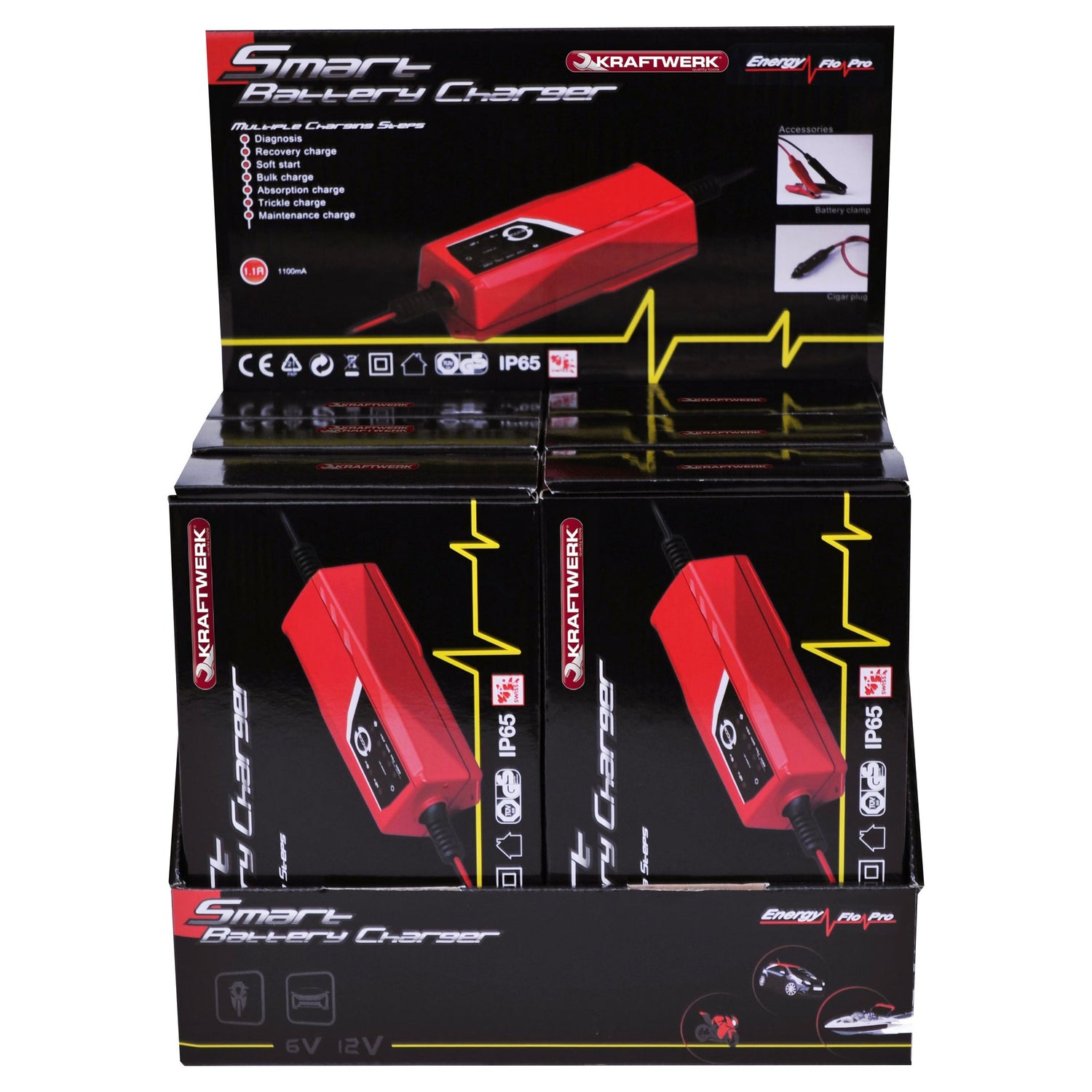 - Modell: Kraftwerk Batterie-Ladegerät 6 / 12 V, Verkaufsdisplay mit 6 Stk.