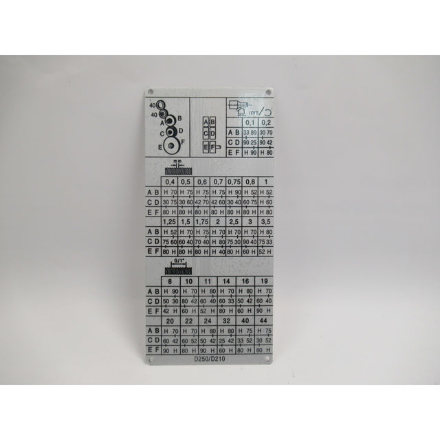 OPTIMUM Gewindeschneidtabelle D 210/250 Geschwindigkeiten & Gewindetabelle – Ausführung 1 SM-03420321105